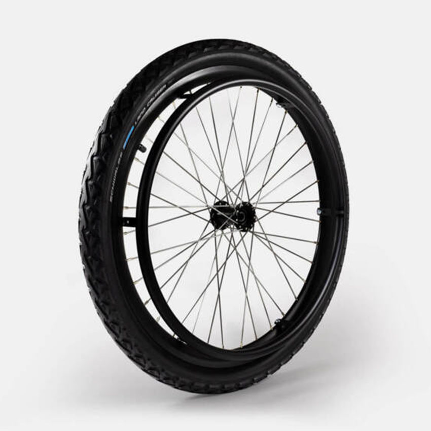 Koło terenowe Off-Road zostało zaprojektowane specjalnie z myślą o użytkownikach, którzy wymagają od sprzętu zwiększonej wytrzymałości i komfortu jazdy. Obręcz wykonano z lekkiego, a jednocześnie mocnego aluminium, co redukuje masę koła przy jednoczesnym zachowaniu bardzo wysokiej odporności na obciążenia. Koło uzbrojono w czarne ciągi aluminiowe, które nie tylko nadają mu atrakcyjny wygląd, ale przede wszystkim gwarantują dobrą przyczepność dłoni podczas jazdy, również w trudniejszych warunkach pogodowych. Całość uzupełniają opony terenowe Schwalbe Land Cruiser — jedne z najpopularniejszych i najbardziej cenionych opon do zadań mieszanych, które sprawdzają się zarówno na asfalcie, jak i poza nim.